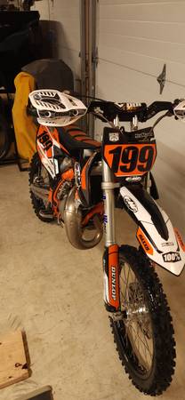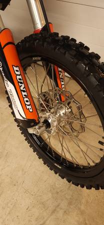 Selling my sons bike as he is too big for it now. Comes with new 17/19 wheel and tire set. I still have the good factory smaller wheels and tires that can go right back on. New clutch (that it did not need) and I also re packed the silencer when I did the one on my bike. I have a couple extra new air filters to go with it as well. Also comes with the factory plastic kit. I bought a new bigger bike so no need for this one anymore. As it sits it is ready to ride. Located in Berkeley Springs WV 25422 $3200